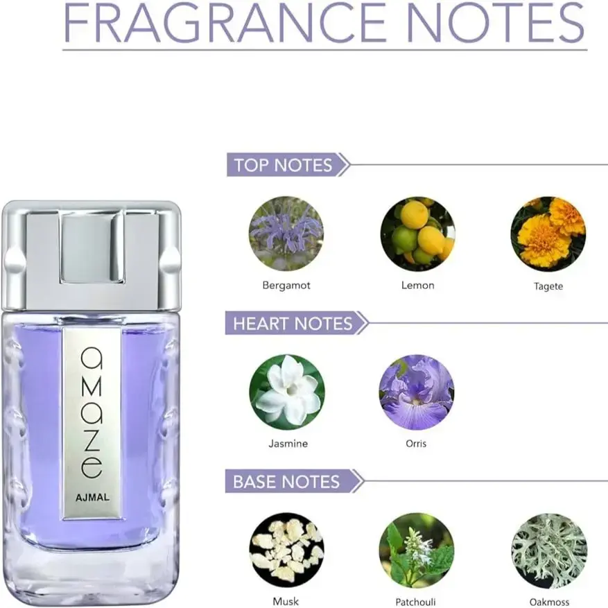 Amaze by Ajmal is a mesmerizing fragrance designed to elevate your presence and make a lasting impression. With its unique blend of citrus, floral, and leathery notes, Amaze captivates the senses and leaves an indelible mark on every occasion.
