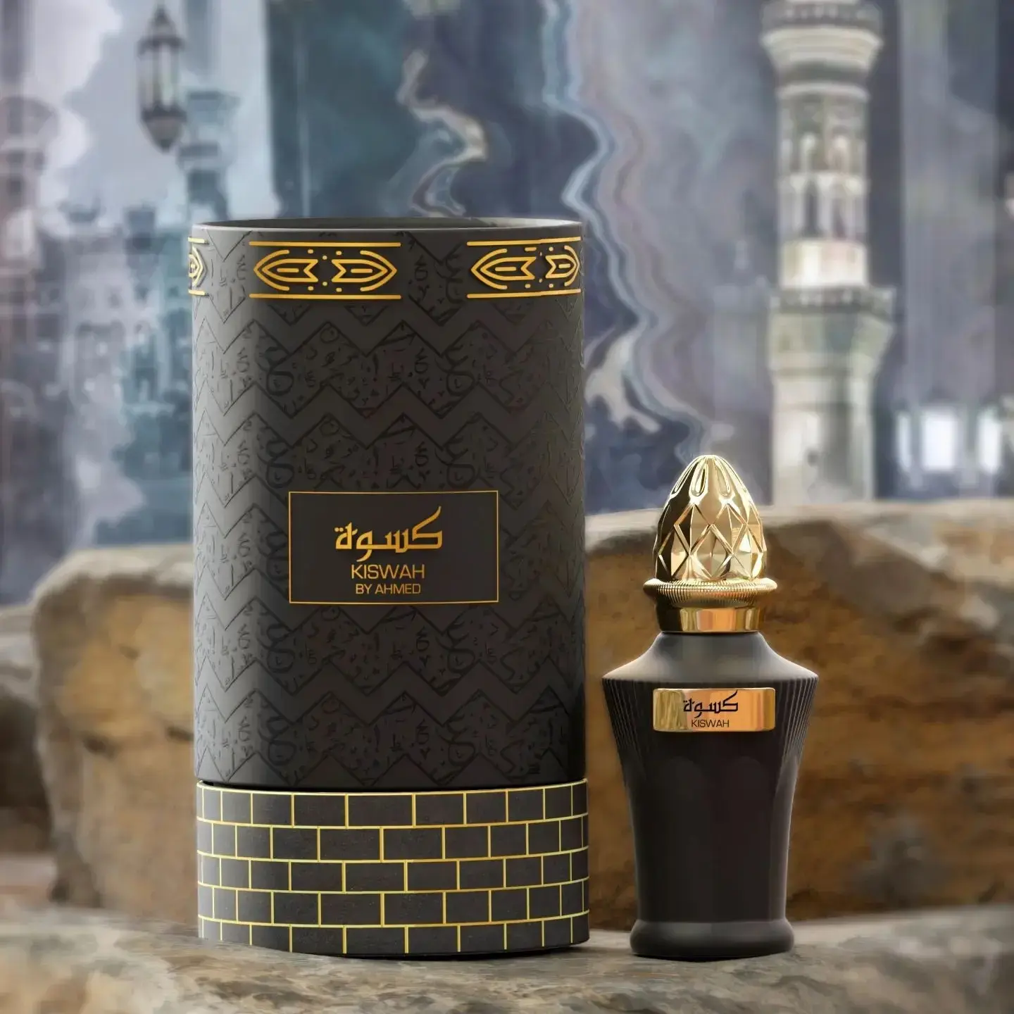 Introducing Kiswah by Ahmed, a distinctive and captivating fragrance encapsulated in a 10ml bottle. A Unique Fragrance Created from the Thought of Kiswat Kaabah, this perfume is a homage to the sacred Kiswah covering the Kaabah, resonating with the essence of spirituality and devotion. Crafted and inspired by the Kingdom of Saudi Arabia’s rich heritage and aromatic traditions, Kiswah by Ahmed embodies a harmonious blend of carefully selected notes, reflecting a deep sense of cultural reverence.