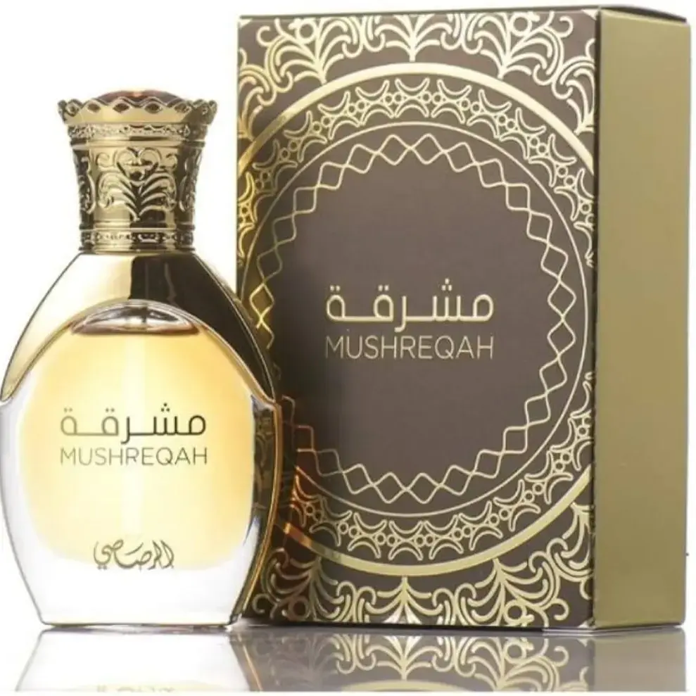 Rasasi Mushreqah is an oriental fragrance for men and women with top notes of citrus bergamot, jasmine, and cedar. The middle notes are floral with jasmine and roses, while the heart notes include basil leaves, vanilla, and cardamom. The dry down has fruity, woody, and powdery notes.